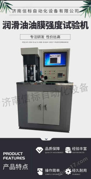 濟南信標自動化設(shè)備有限公司專業(yè)從事摩擦磨損、潤滑評定測試設(shè)備研制及試驗技術(shù)的研究。主要生產(chǎn)四球摩擦試驗機系列、端面摩損試驗機系列、環(huán)塊摩擦磨損試驗機系列、長時摩擦磨損試驗機系列、滑動軸承摩擦磨損試驗機系列以及高溫、真空、腐蝕等特殊功能的摩擦磨損試驗機,共計三十多個規(guī)格品種,能夠有效模擬點、線、面等摩擦副形式,實現(xiàn)摩擦副對偶件的滾動、滑動、滾滑、間歇、往復、復合等多種運動形式。廣泛應用于石化行業(yè),大專院校及摩擦學各個專業(yè)領(lǐng)域。 潤滑脂抗磨性能測試儀 一、 主要用途與適用范圍 該機主要是以滑動摩擦的形式,在ji高的點接觸壓力條件下評定潤滑劑的承載能力。包括最大無卡咬負荷PB、燒結(jié)負荷PD、綜合磨損值ZMZ等三項指標。該機還可以做潤滑劑的長時抗磨損試驗,測定摩擦系數(shù),記錄摩擦力和溫度曲線。