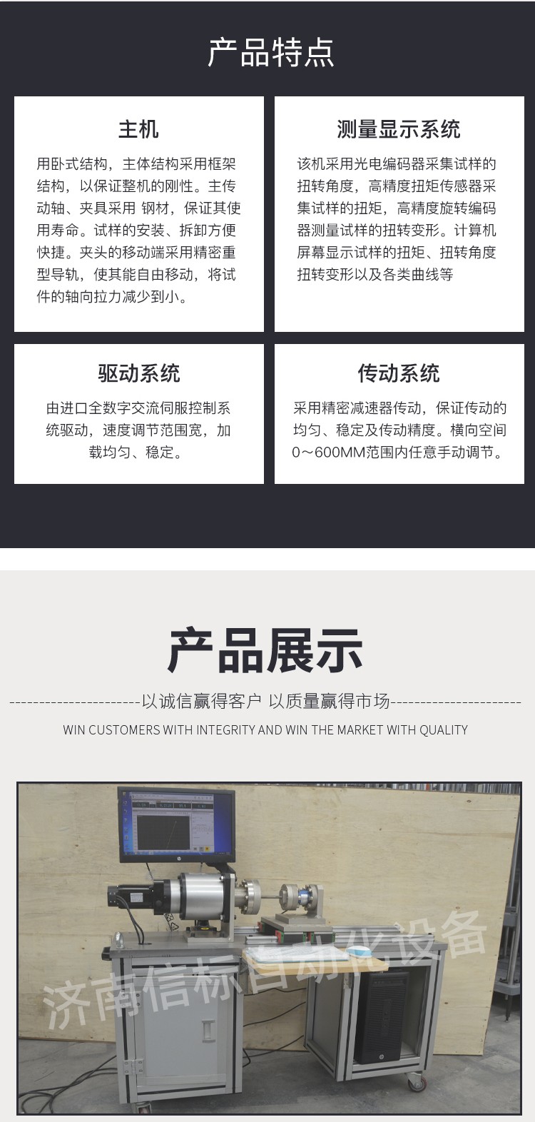 4、測(cè)量顯示系統(tǒng):該機(jī)采用光電編碼器采集試樣的扭轉(zhuǎn)角度,高精度扭矩傳感器采集試樣的扭矩,高精度旋轉(zhuǎn)編碼器測(cè)量試樣的扭轉(zhuǎn)變形。計(jì)算機(jī)屏幕顯示試樣的扭矩、扭轉(zhuǎn)角度、扭轉(zhuǎn)變形以及各類曲線等。