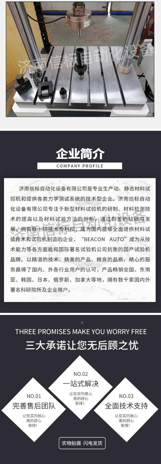 濟南信標自動化設備有限公司主要生產(chǎn):動靜態(tài)萬能疲勞試驗機,接骨板彎曲試驗機,縫合線拉伸疲勞試驗機,髖膝關節(jié)磨損試驗機,電子萬能試驗機、液壓萬能試驗機、巖石三軸、四軸,電液拉力試驗機,材料試驗機,高低溫蠕變,高低頻疲勞,拉伸、扭轉(zhuǎn)、杯突等二十多個系列兩千多個的品種。