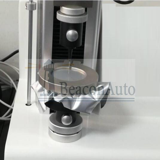 WDC-5微機(jī)控制鋰電池隔膜穿刺試驗(yàn)機(jī) 穿刺強(qiáng)度定義: 將直徑為100mm的試片安裝在樣膜固定夾環(huán)上,然后用直徑為1.0mm,球形頂端半徑為0.5mm的鋼針,以(50±5)mm/min的速度去頂刺,讀取鋼針穿透試片的大負(fù)荷,測試片數(shù)5個(gè)以上,取其平均值。 塑料薄膜的抗穿刺能可更全面反映薄膜的抗穿刺性能。 塑料薄膜或復(fù)合薄膜的耐穿刺力是檢測包裝材料的重要指標(biāo)之一,尤其是對于蒸熟肉制品包裝,例如禽類肉制品,其中骨頭對包裝材料有較強(qiáng)的穿刺能力,因此,測試包材的穿刺強(qiáng)度是包材廠家及食品生產(chǎn)企業(yè)必檢項(xiàng)目。其實(shí)驗(yàn)方法在GB/T 10004-2008(包裝用塑料復(fù)合膜、袋干法復(fù)合、擠出復(fù)合)有明確規(guī)定。