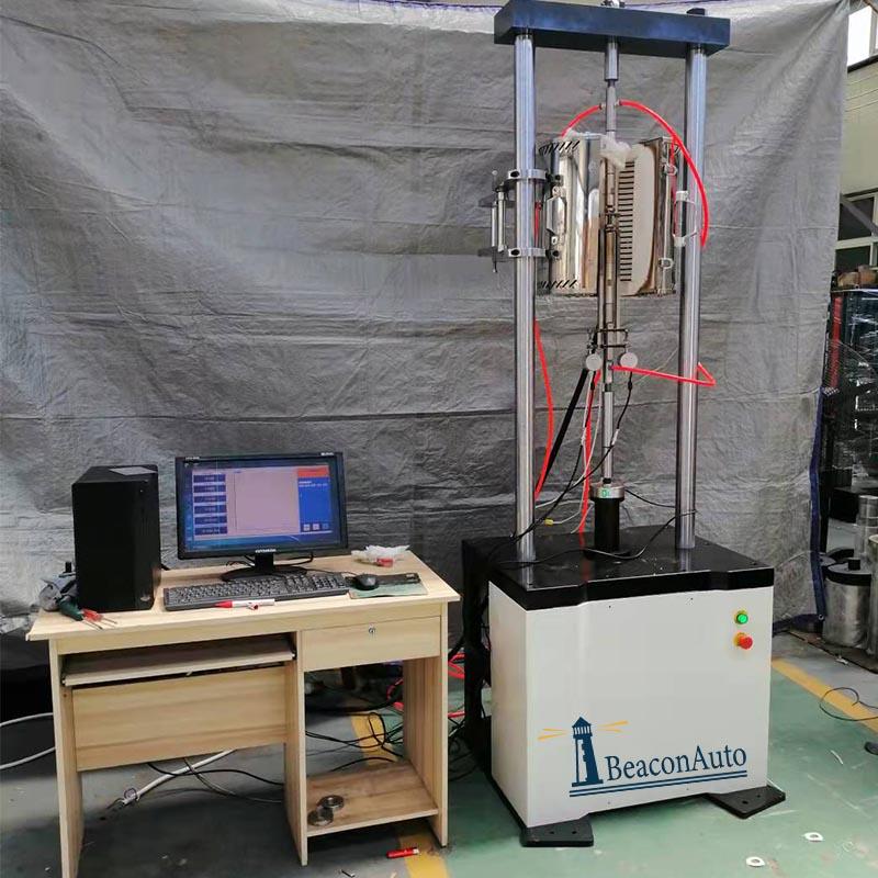 高溫蠕變?cè)囼?yàn)機(jī) 合金材料持久強(qiáng)度蠕變?cè)囼?yàn)儀 高溫蠕變?cè)囼?yàn)機(jī) 合金材料持久強(qiáng)度蠕變?cè)囼?yàn)儀產(chǎn)品型號(hào):GRC-50KN 產(chǎn)品用途:RGC-50型高溫蠕變持久試驗(yàn)機(jī)是一種由計(jì)算機(jī)管理測(cè)控的試驗(yàn)儀器。該試驗(yàn)機(jī)配置了高穩(wěn)定性、高精度伺服加荷系統(tǒng),可對(duì)高溫合金、鈦合金、其它黑色金屬、有色金屬的棒材及板材試樣進(jìn)行300~1200℃,試驗(yàn)時(shí)間不超過15000小時(shí),總伸長(zhǎng)率不超過1%范圍內(nèi)的標(biāo)準(zhǔn)高溫持久、標(biāo)準(zhǔn)蠕變試驗(yàn)及高溫拉伸、室溫拉伸、周期循環(huán)加載等試驗(yàn)。根據(jù)用戶要求還可以增加應(yīng)力腐蝕測(cè)試系統(tǒng)。具有功能齊全、顯示直觀、維護(hù)方便及造型美觀等特點(diǎn)。整機(jī)由主機(jī)、電器柜、集散控制系統(tǒng)所組成。 高溫蠕變?cè)囼?yàn)機(jī) 合金材料持久強(qiáng)度蠕變?cè)囼?yàn)儀執(zhí)行標(biāo)準(zhǔn): JJG276-2009 《高溫蠕變、持久強(qiáng)度試驗(yàn)機(jī)》 GB/T2039-1997《金屬拉伸蠕變及持久試驗(yàn)方法》 HB5151-1996 《金屬高溫拉伸蠕變?cè)囼?yàn)方法》 高溫蠕變?cè)囼?yàn)機(jī) 合金材料持久強(qiáng)度蠕變?cè)囼?yàn)儀產(chǎn)品特點(diǎn):1.系統(tǒng)分兩級(jí)控制,采用高性能數(shù)字智能控溫儀器,每套直接控制系統(tǒng)同時(shí)控制5臺(tái)電爐,每爐三個(gè)控溫點(diǎn),分三段控溫。兼容各種合金熱電偶。 2.系統(tǒng)自動(dòng)加載,可任意設(shè)定所需的試驗(yàn)載荷及加載速度,加載速率等控制參數(shù)為無級(jí)設(shè)置,控制系統(tǒng)對(duì)試驗(yàn)全過程實(shí)時(shí)伺服控制和測(cè)量,并具有良好的抗干擾能力。 3.各直接控制系統(tǒng)可與主機(jī)聯(lián)機(jī)控制,也可脫離主機(jī)單獨(dú)操作(包括各參數(shù)的設(shè)定和修改)和控制。彩色觸摸液晶屏可顯示:載荷、加載速率、位移、變形(左右變形及變形平均值)、溫度(上中下三段)、運(yùn)行時(shí)間以及程序執(zhí)行內(nèi)容。具有:快上、快下、慢上、慢下、停止、蠕變清零、載荷清零、同軸度加荷等按鍵。 4.自動(dòng)升溫,保溫、加載計(jì)時(shí)控制,自動(dòng)累計(jì)加荷試驗(yàn)時(shí)間,自動(dòng)溫度控制和梯度調(diào)節(jié),升溫速率控制,保溫計(jì)時(shí)控制。 5.加載提示、加載時(shí)間自動(dòng)累計(jì)、增載提示、試驗(yàn)結(jié)束提示與自動(dòng)停止操作。自動(dòng)室溫補(bǔ)償、自動(dòng)通道誤差和電偶誤差補(bǔ)償。 6.多種報(bào)警和保護(hù)功能:具有試樣變形和拉斷報(bào)警、熱電偶斷路和短路報(bào)警、溫度超控制范圍報(bào)警和爐溫超上限斷電保護(hù)、系統(tǒng)故障、失控?cái)嚯姳Wo(hù)、試驗(yàn)結(jié)束提示報(bào)警功能。 7.顯示界面直觀、三段控溫過程溫度、曲線獨(dú)立顯示,光標(biāo)定位數(shù)據(jù)查詢。所有操作采用下拉菜單人機(jī)對(duì)話方式,操作方便,并具有遠(yuǎn)程維護(hù)功能。 8.多種“原始記錄”和“試驗(yàn)報(bào)告”查詢方式,數(shù)據(jù)可導(dǎo)出、打印,操作方便、靈活。 9.系統(tǒng)具有多級(jí)用戶權(quán)限管理,不能越權(quán)操作。 10.蠕變變形測(cè)量方式采用數(shù)字光柵傳感器,分左、右變形測(cè)量,并且對(duì)左、右變形值可以分開進(jìn)行標(biāo)定和修正。 11.系統(tǒng)對(duì)每個(gè)測(cè)溫點(diǎn)具有完善的溫度校準(zhǔn)和誤差修正,保證測(cè)量數(shù)據(jù)準(zhǔn)確。 高溫蠕變?cè)囼?yàn)機(jī) 合金材料持久強(qiáng)度蠕變?cè)囼?yàn)儀技術(shù)參數(shù) 1.最大加載能力:50KN 2.試驗(yàn)力測(cè)量誤差:±0.5%示值,從滿量程的1%開始. 3.試驗(yàn)力分辨率:1N 4.拉桿速度:0.001-100mm/min 5.拉桿最大行程:200mm(范圍內(nèi)按用戶要求) 6.變形測(cè)量方式:拉桿編碼器 7.變形測(cè)量范圍:1-10mm。 8.變形測(cè)量誤差:±0.5% 9.高溫爐尺寸 :φ320×460mm 10.爐腔內(nèi)徑:φ90(可定制) 11.溫度范圍:室溫~1200℃ (可隨意選取) 12.控溫精度:±1℃ 13.分辨率:0.1℃ 14.恒溫區(qū)長(zhǎng)度:100-250mm 15.蠕變加荷控制:采用進(jìn)口伺服系統(tǒng) 16.加荷范圍:0~50kN連續(xù)可調(diào) 17.控制精度:±1% 高溫蠕變?cè)囼?yàn)機(jī) 合金材料持久強(qiáng)度蠕變?cè)囼?yàn)儀基本配置 1.主機(jī) 1臺(tái) 2.伺服電機(jī)(松下) 1臺(tái) 3.驅(qū)動(dòng)器(松下) 1套 5.滾珠絲杠副 1套 6.絲杠加載機(jī)構(gòu) 1套 7.對(duì)開式大氣高溫爐 1套 8.計(jì)算機(jī)(知名品牌工業(yè)控制計(jì)算機(jī)、主流配置) 1臺(tái) 9.打印機(jī)(HP激光A4) 1臺(tái) 10.控制器及電纜線 1套 11.windows平臺(tái)下的中文專用試驗(yàn)軟件 1套 12.高精度負(fù)荷傳感器 1只 13.高溫引伸計(jì)(長(zhǎng)春 ) 1 只 14.編碼器(多沐川) 1只 15.技術(shù)文件(使用說明書、合格證、裝箱單) 1套 16.軟件備份光盤 1套 更多高溫蠕變?cè)囼?yàn)機(jī) 合金材料持久強(qiáng)度蠕變?cè)囼?yàn)儀資料請(qǐng)電話聯(lián)系我們。